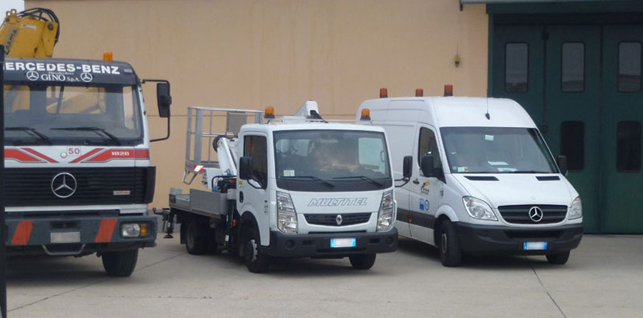 In particolare siamo dotati di una decina di mezzi operativi dei quali tre sono piattaforme di lavoro elevabili di ultima generazione.